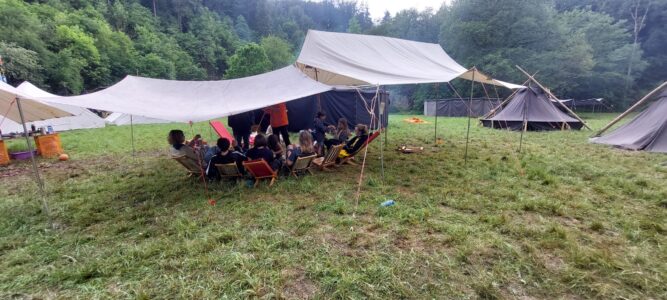 Bereits am Donnerstag fuhr das Aufbauteam um 9 Uhr ins Brexbachtal. Sie bereiteten den Platz vor, indem sie das Küchenzelt, die Aufenthaltsjurte und die Leiterjurte aufstellten. Dank ihres Einsatzes war alles bereit für die Ankunft der Teilnehmer am nächsten Tag.