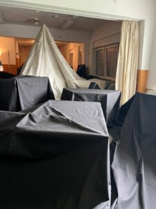 Am Montagmorgen stand der Abbau auf dem Programm. Nach dem Frühstück wurden die Zelte abgebaut, der Platz aufgeräumt und alles verladen. Zurück am Parkplatz warteten bereits einige Eltern, die sich bereit erklärt hatten, Kinder mitzunehmen. Zurück an der St. Michaelskirche kamen wir noch einmal in einer Reflexionsrunde zusammen und tauschten uns mit den Eltern aus. Unsere Pfadies haben mit den Leitern zusammen die nassen Zelte und Planen aufgegangen und in den folgenden Tagen auch wieder abgehangen und im Lager eingeräumt.
